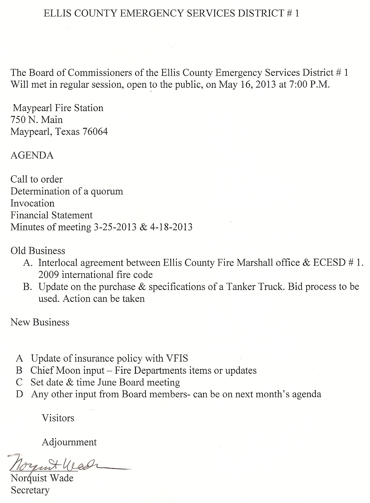 Ellis County Emergency Services District #1 Regular Meeting - Friday, May 27, 2016 | 5/23/2016 3:05 PM | 5/23/2016 3:07 PM |